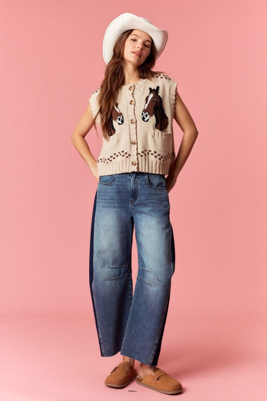 Product Name: Horse and Horseshoe Detailed Knit Vest Cardigan