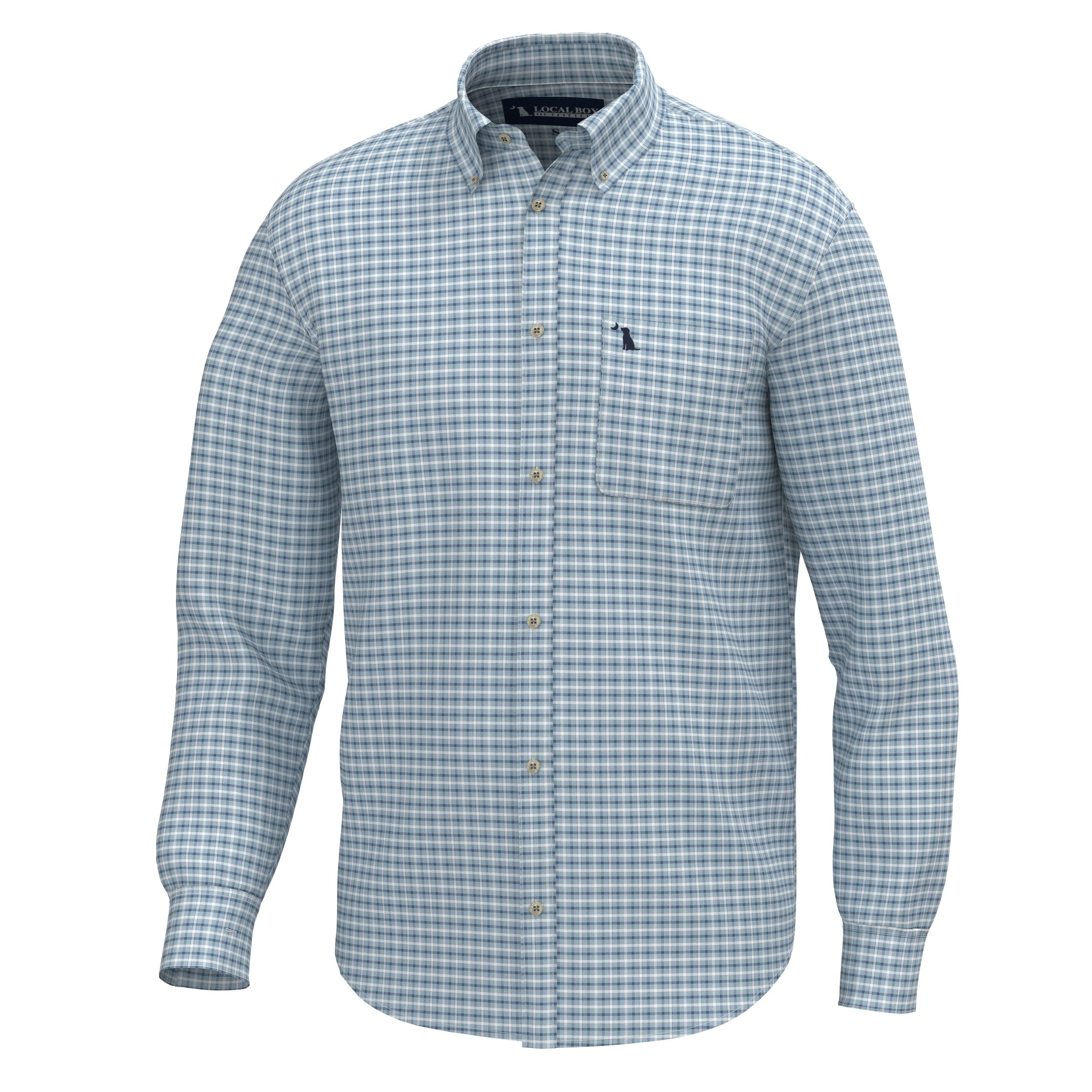 The Local Boy Dress Shirt is a versatile staple for days in the office or nights out. Designed with a comfortable fit and a left chest pocket featuring the embroidered Dog & Moon logo, this shirt delivers effortless style that makes dressing up easy.