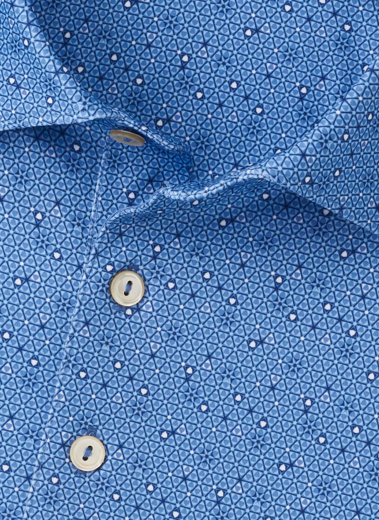 Peter Millar's Summer Comfort jersey polos are gold standards for softness and exceptional performance. These are packed with four-way stretch, wicking and UPF 50+ protection in our signature Summer Comfort fabrication. This shirt features a custom-designed geometric print for added style. Finished with a spread collar and three-button placket.