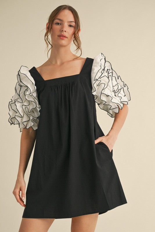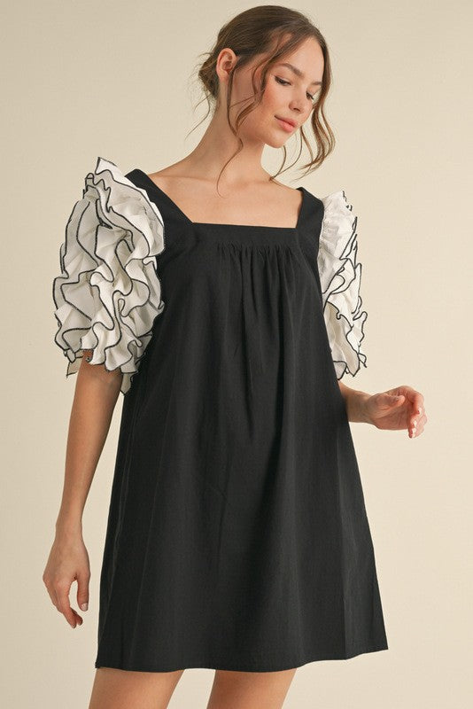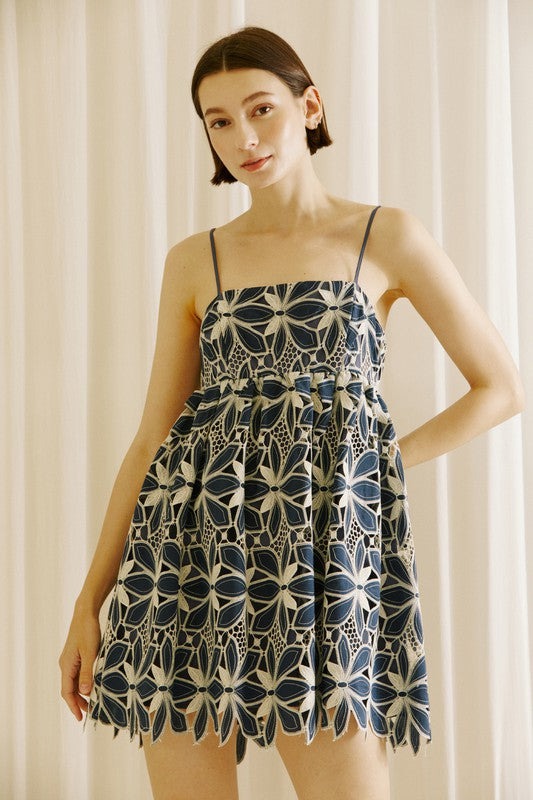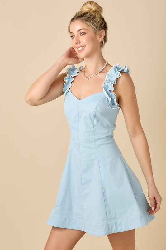 Bell Sleeve Soutache Mini Dress With Back Cut Out