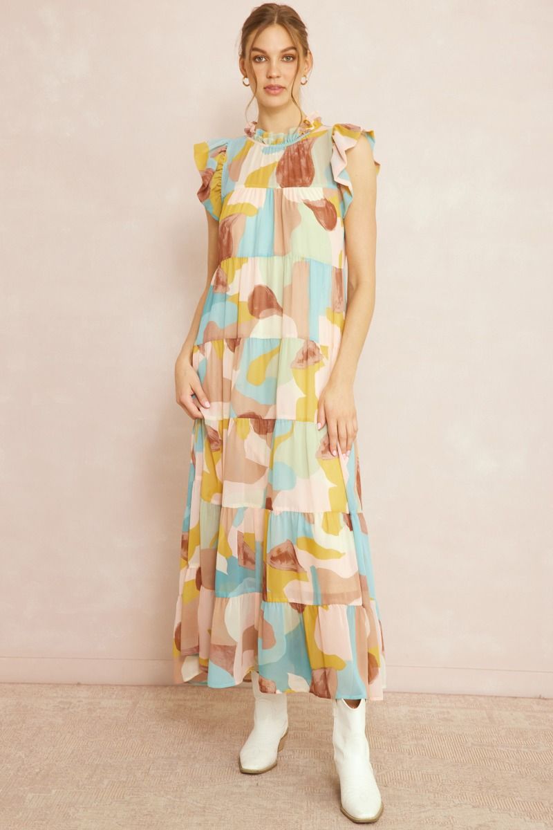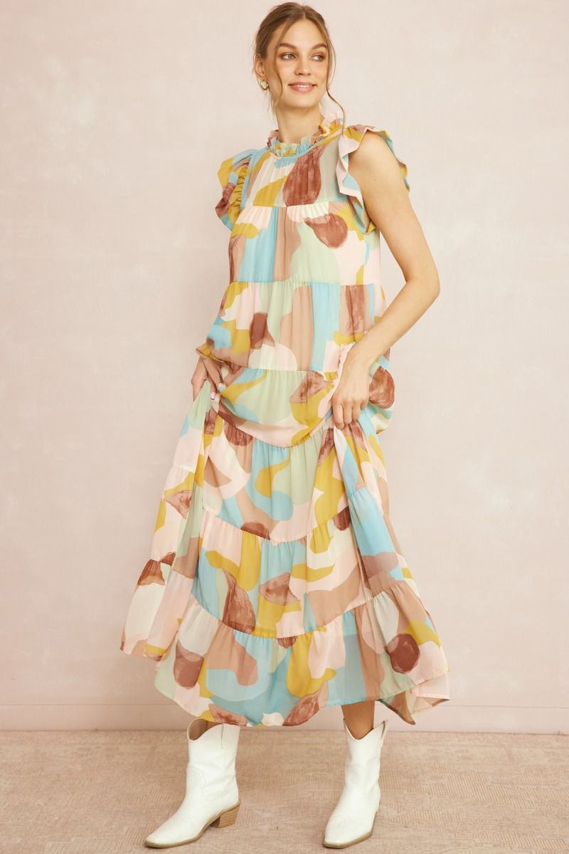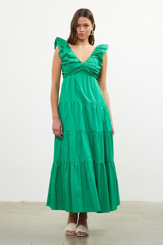 Short Sleeve Tiered Maxi Dress With Contrast Detail And Pockets