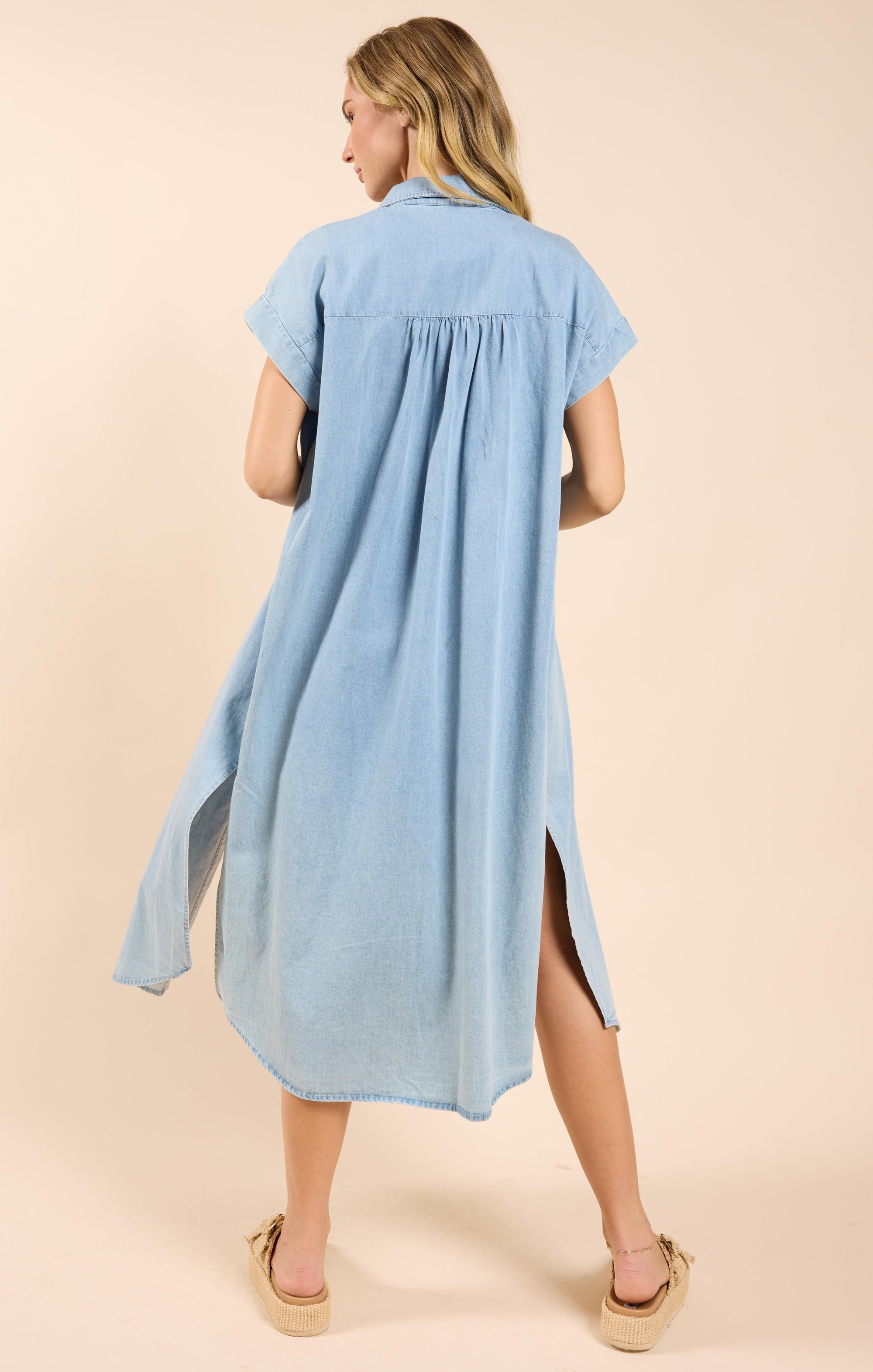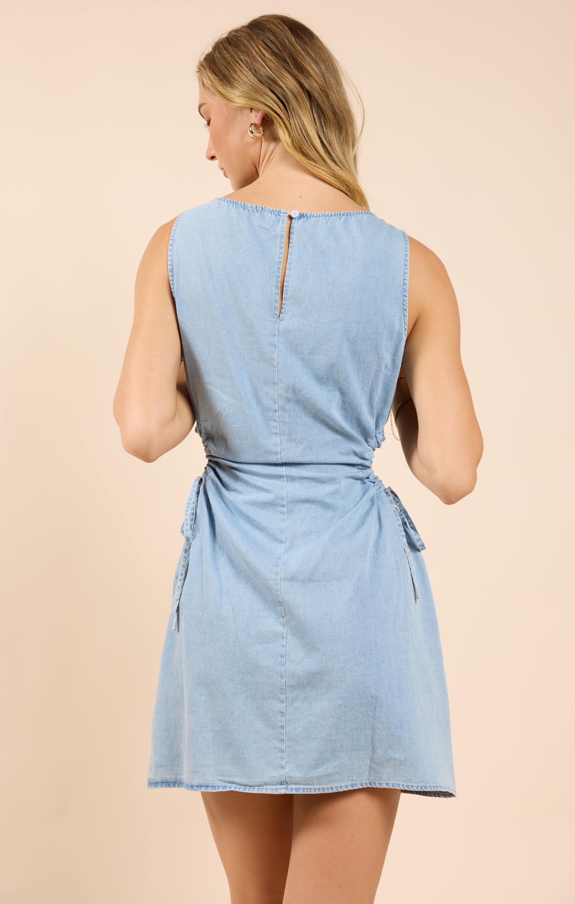 Drop Shoulder Braided Detail Denim Mini Dress With Pockets