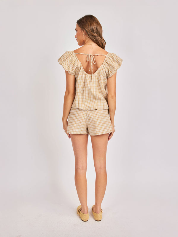 ✔ Neutral Gingham Pattern – A timeless taupe and white check that pairs effortlessly with earth tones and crisp whites.